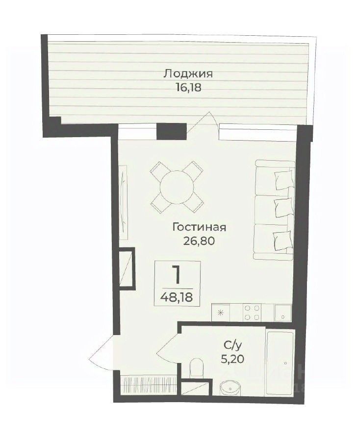 В строящемся апарт-комплексе TAMERUN продаются апартаменты. Общая площадь с лоджией 48,2 м2.