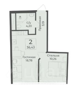 В строящемся апарт-комплексе TAMERUN продаются апартаменты, которые состоят из кухни-гостиной 18,8 м2, спальни 10,2 м2, санузла 4,2 м2 и прихожей 3,2 м2. Общая площадь 36,4 м2.