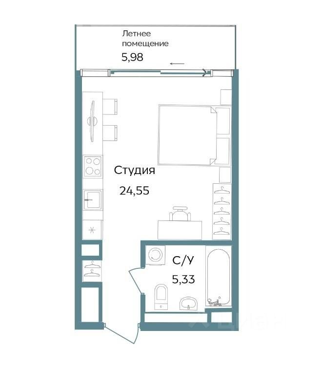 В строящемся кластере на первой береговой линии Tempo продаются отличные апартаменты (студия) с видом во двор, которые состоят из студии 24,6 м2, совмещенного санузла 5,3 м2, и балкона 6,0 м2. Общая площадь с балконом 35,9 м2.