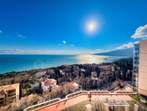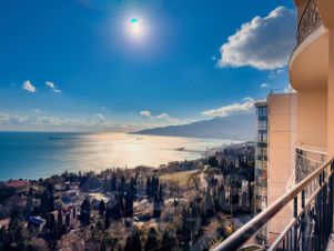 Квартира общей площадью 38,6 кв.м, расположена на 7 этаже 10 этажного корпуса. Главное достоинство панорамное остекление. Окна и терраса выходят на Южную сторону откуда открывается вид на море, горный хребет и ялтинскую бухту. Высокие потолки 3,40 м дарят много света и воздуха.