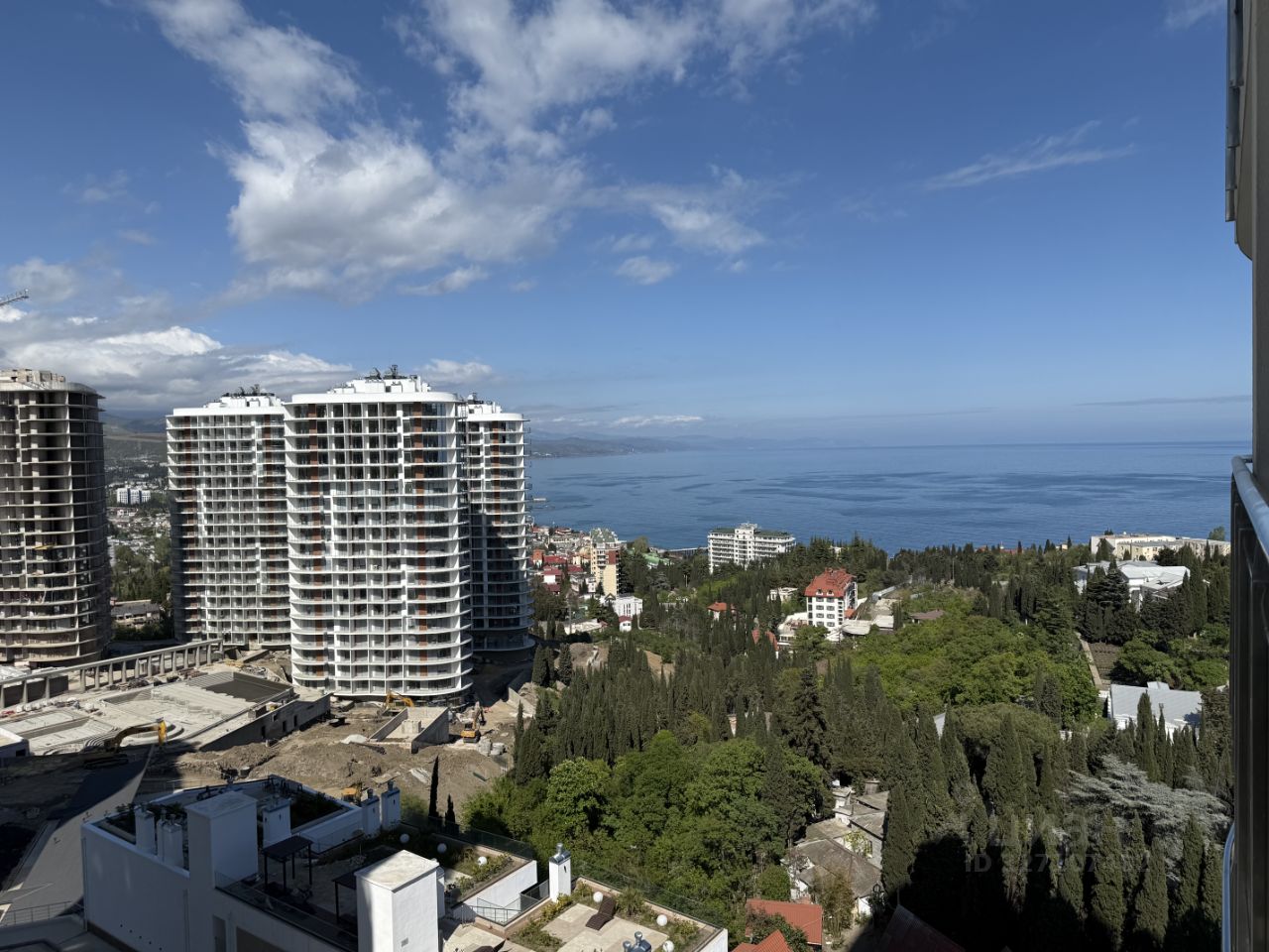 Площадь 38м квадратных, 6 этаж, вид из окна на море и горы.