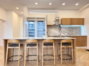 - Встраиваемая техника ASKO, имеется полноценная холодильная и морозильная камеры, профессиональная варочная поверхность с функцией объединения зон, посудомоечная машина, духовой шкаф с амортизирующими доводчиками и выкатной системой, стиральная машина, профессиональная вытяжка для любителей готовить.