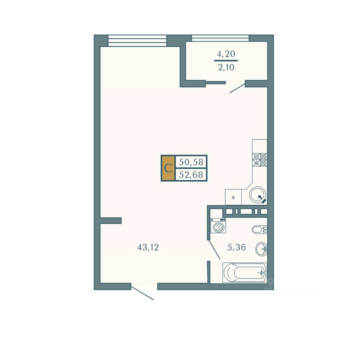 Общая площадь52,68 м²