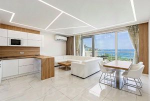 Отдельного внимания заслуживает инфраструктура дома: есть паркинг и консьерж. До пляжа и набережной идти всего 57 минут пешком.
