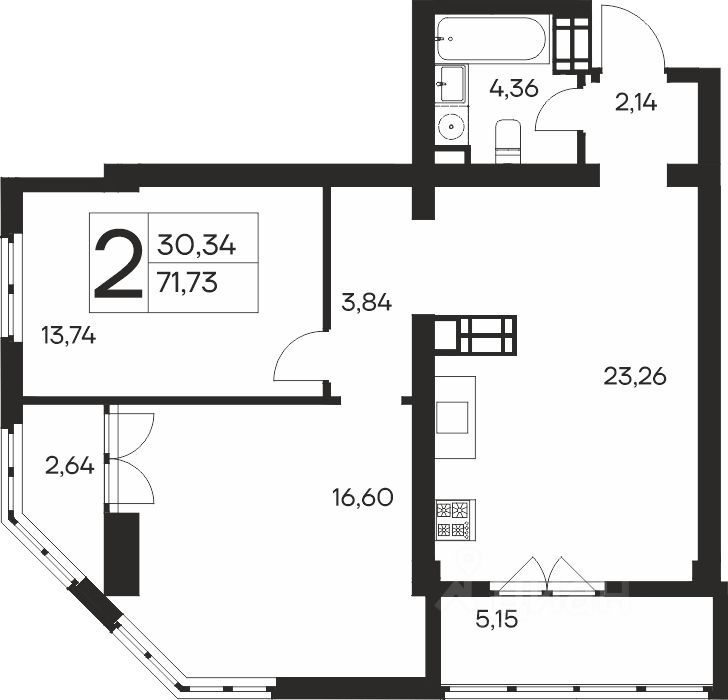71,73 м²