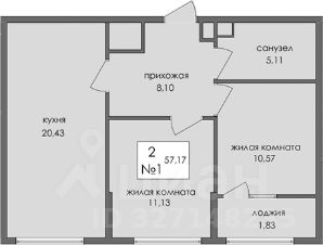Общая площадь57,17 м²