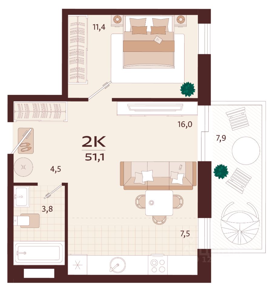 Продаётся 2-комнатная квартира в строящемся доме (Корпус 2), срок сдачи: II-кв. 2027, общей площадью 51.1 кв.м., на 4 этаже. Жилой комплекс бизнес-класса "РОЯЛТА" от застройщика "ГК ТОЧНО" в городе Ялта Республики Крым на улице Спендиарова.