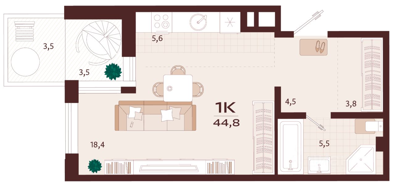 Продаётся 1-комнатная квартира в строящемся доме (Корпус 2), срок сдачи: II-кв. 2027, общей площадью 41.3 кв.м., на 5 этаже. Жилой комплекс бизнес-класса "РОЯЛТА" от застройщика "ГК ТОЧНО" в городе Ялта Республики Крым на улице Спендиарова.