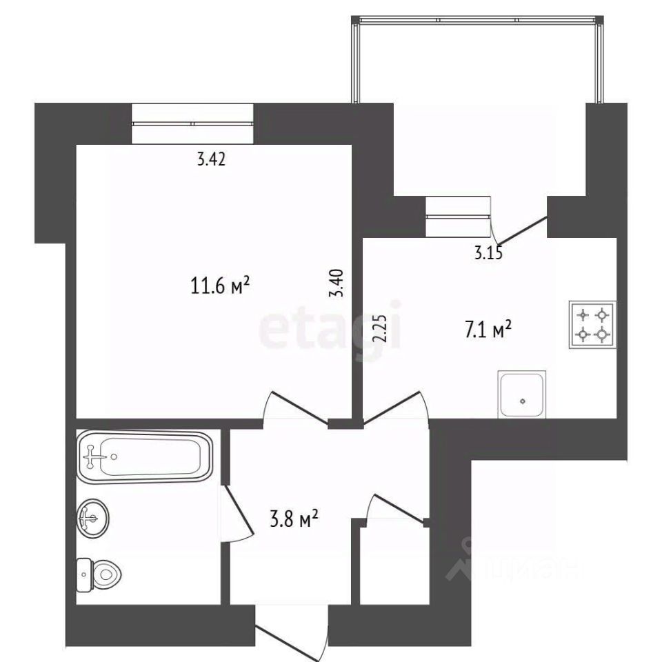 Общая площадь квартиры составляет - 29,8 кв.м., площадь кухни - 7,1 кв.м, комната - 11,6 кв.м. В квартире свежий ремонт с использованием качественных строительных материалов.