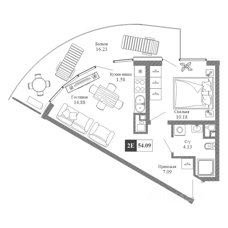 Здания оригинальной треугольной формы обеспечивают равномерное наполнение каждых апартаментов солнечным светом. Точно выверенный угол поворота корпусов позволяет любоваться завораживающими панорамами Крыма.