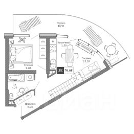 Общая площадь76,68 м²