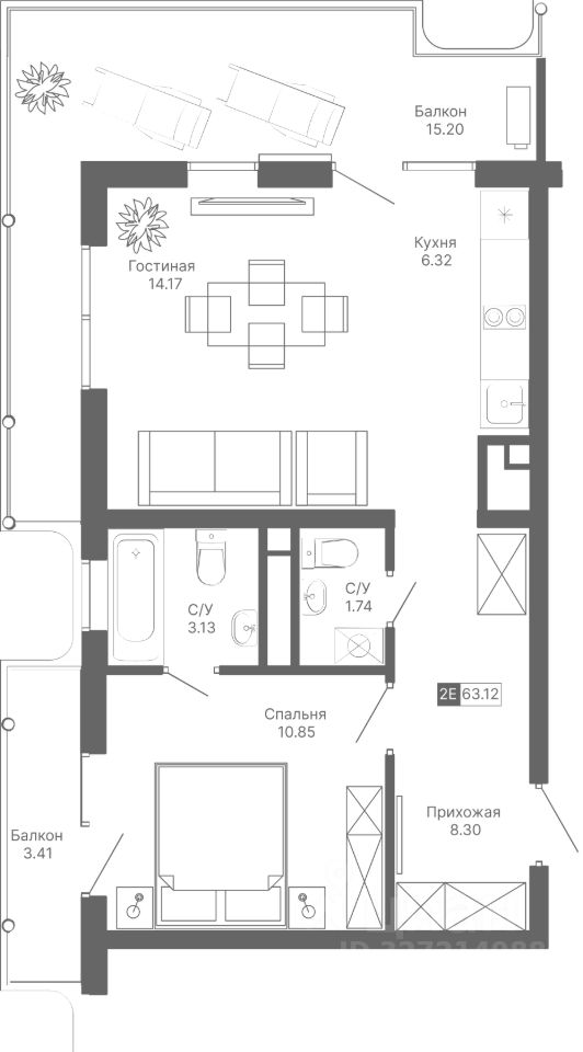 Продаются 2-комнатные апартаменты в сданном доме (Корпус 5 "Айвазовский"), срок сдачи: IV-кв. 2025, общей площадью 63.12 кв.м., на 15 этаже. Апартаменты с отделкой white box, панорамным остеклением. В 500 метрах от моря! Главное преимущество комплекса — большие открытые террасы с видом на море, горы и город.