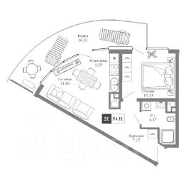 Общая площадь54,11 м²