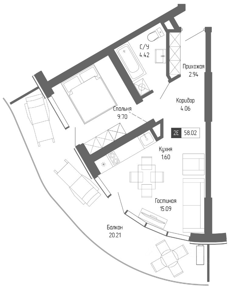 Здания оригинальной треугольной формы обеспечивают равномерное наполнение каждых апартаментов солнечным светом. Точно выверенный угол поворота корпусов позволяет любоваться завораживающими панорамами Крыма.