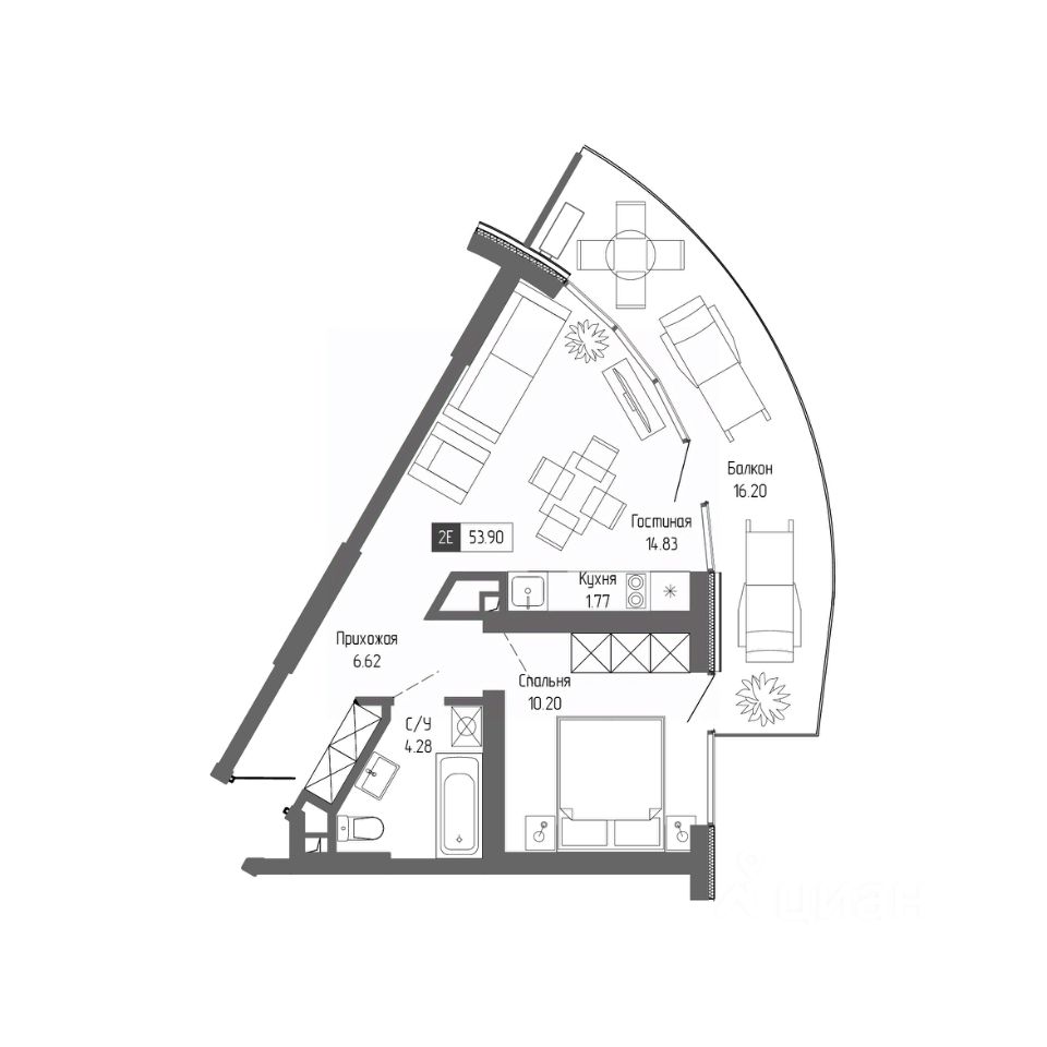 Здания оригинальной треугольной формы обеспечивают равномерное наполнение каждых апартаментов солнечным светом. Точно выверенный угол поворота корпусов позволяет любоваться завораживающими панорамами Крыма.