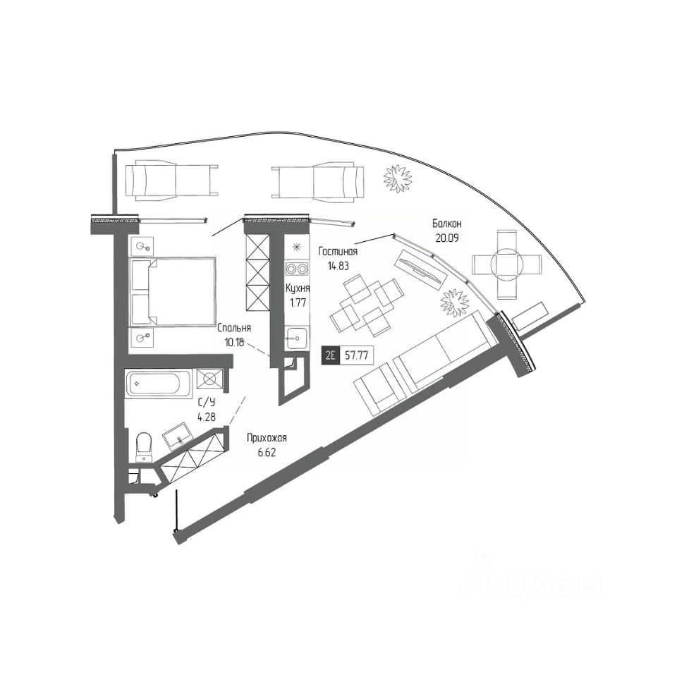 Здания оригинальной треугольной формы обеспечивают равномерное наполнение каждых апартаментов солнечным светом. Точно выверенный угол поворота корпусов позволяет любоваться завораживающими панорамами Крыма.