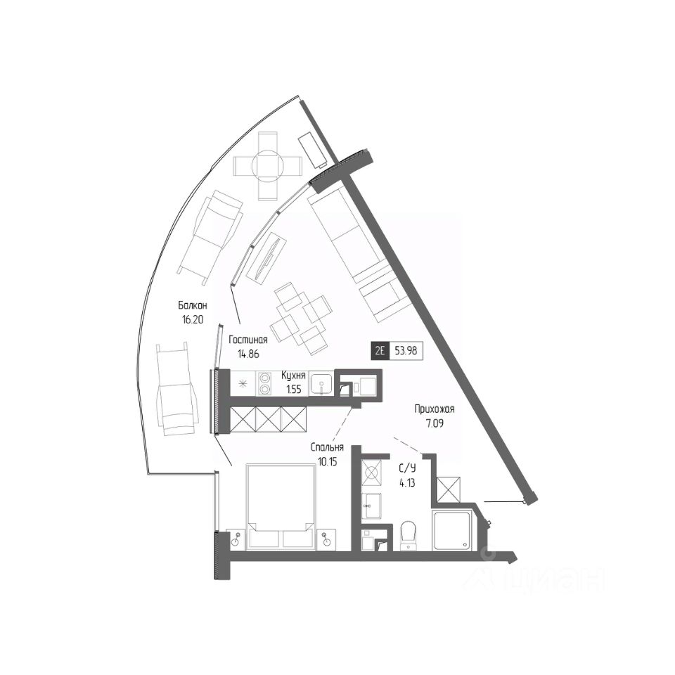 Здания оригинальной треугольной формы обеспечивают равномерное наполнение каждых апартаментов солнечным светом. Точно выверенный угол поворота корпусов позволяет любоваться завораживающими панорамами Крыма.