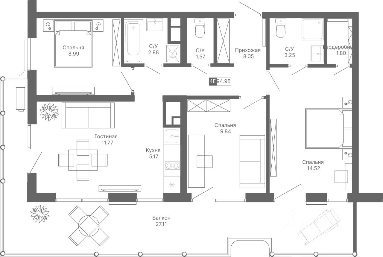 Продаются 4-комнатные апартаменты в сданном доме (Корпус 5 "Айвазовский"), срок сдачи: IV-кв. 2025, общей площадью 94.95 кв.м., на 11 этаже. Апартаменты с отделкой white box, панорамным остеклением. В 500 метрах от моря! Главное преимущество комплекса — большие открытые террасы с видом на море, горы и город.