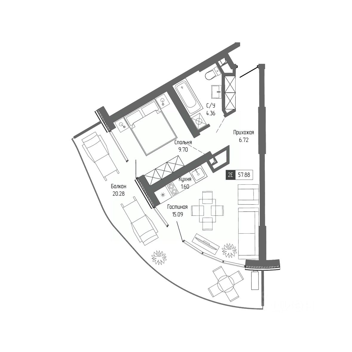 Общая площадь57,88 м²