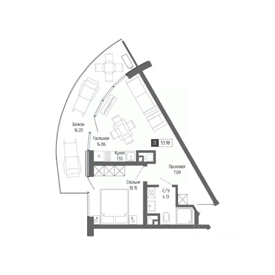 Общая площадь53,98 м²