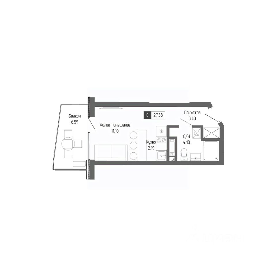 Общая площадь27,38 м²