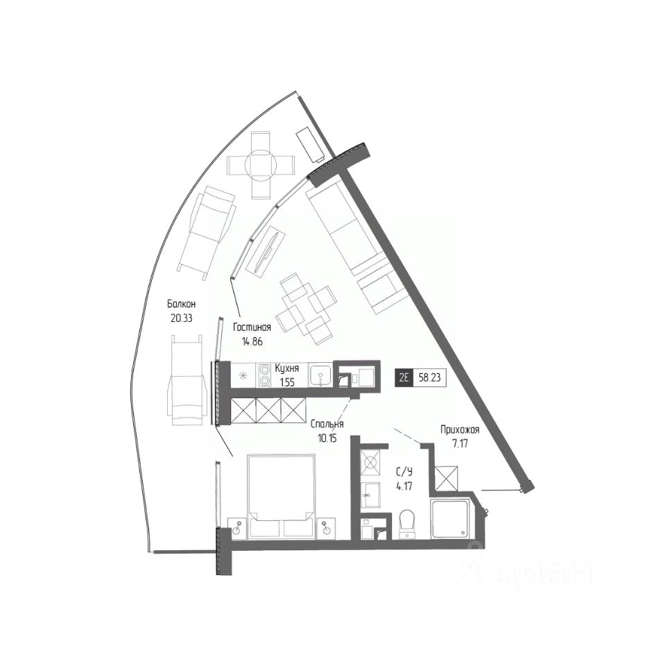 Общая площадь58,23 м²