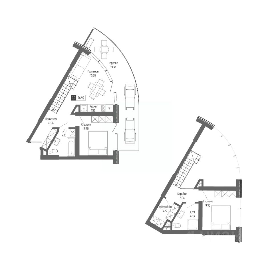 Здания оригинальной треугольной формы обеспечивают равномерное наполнение каждых апартаментов солнечным светом. Точно выверенный угол поворота корпусов позволяет любоваться завораживающими панорамами Крыма.