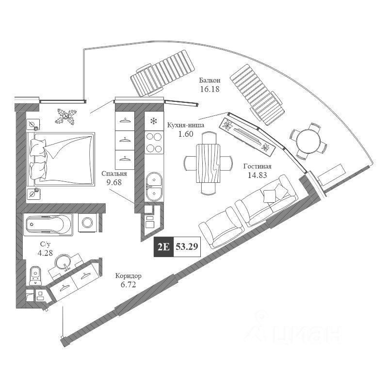 Общая площадь53,29 м²