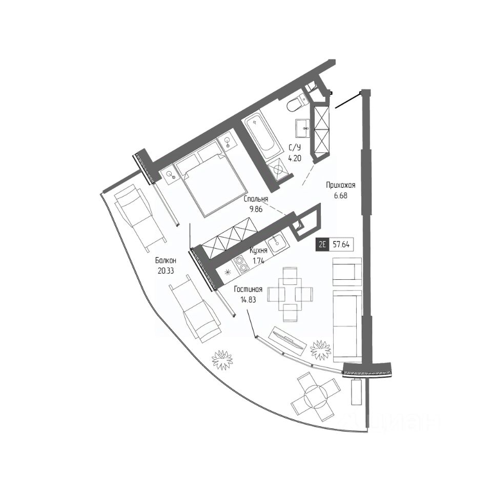 Общая площадь57,64 м²