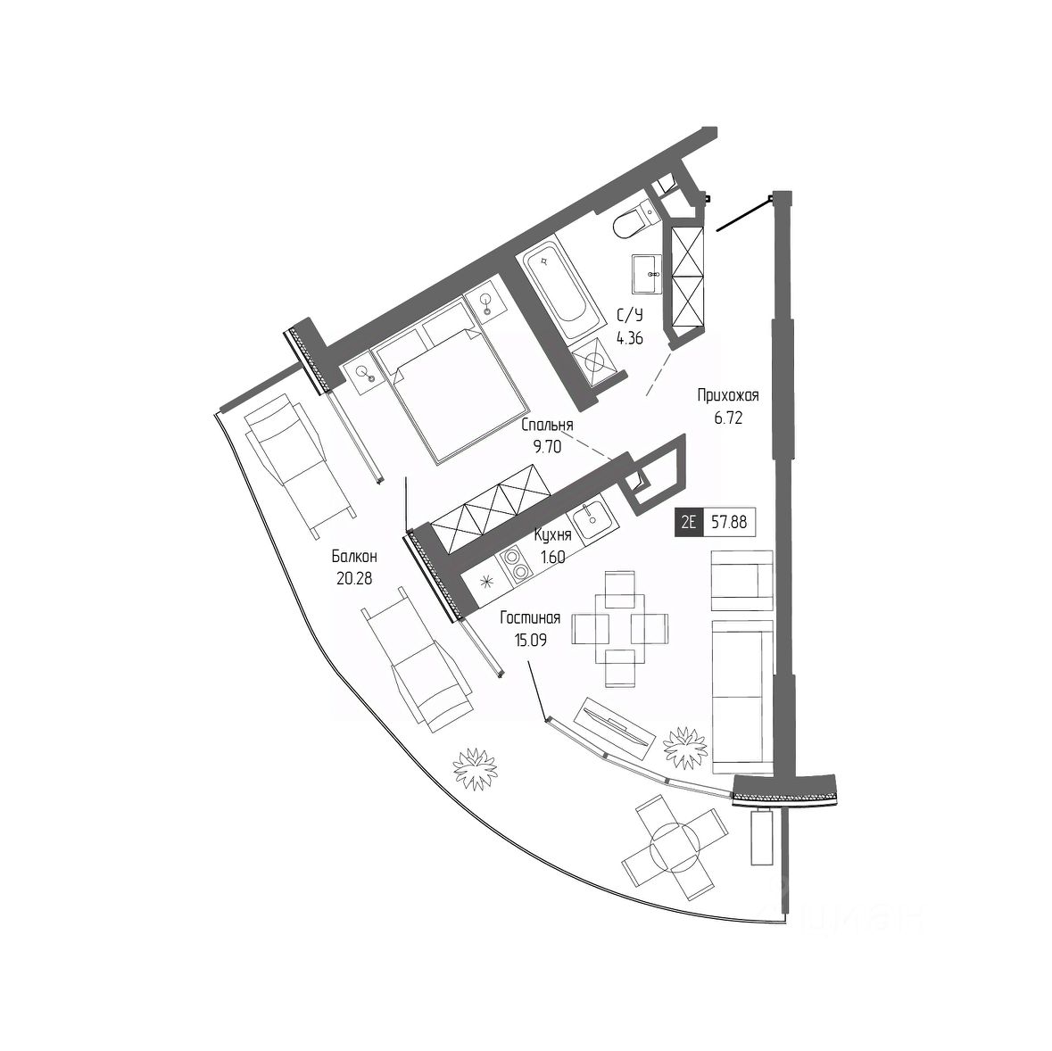 Здания оригинальной треугольной формы обеспечивают равномерное наполнение каждых апартаментов солнечным светом. Точно выверенный угол поворота корпусов позволяет любоваться завораживающими панорамами Крыма.