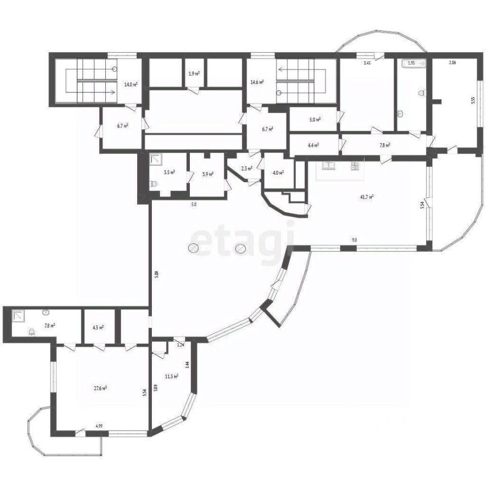 - Площадь 242,2 м² (без учета балконов) + просторные балконы почти в каждой комнате.