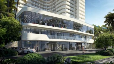 Коммерция - 3-этажная коммерческая галерея перед комплексом (один этаж - 4-5 метров). То есть первый этаж апартаментов на высоте 15 метров. Будет возможность на лифте спуститься, пройти через коммерцию прямо к морю