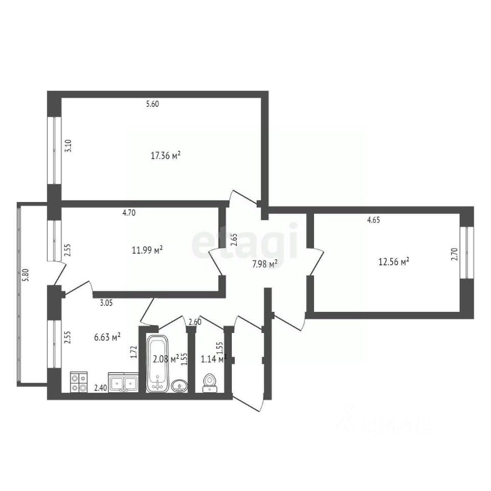 Окна выходят на сквер (солнечная сторона) и во двор, балкон во двор.