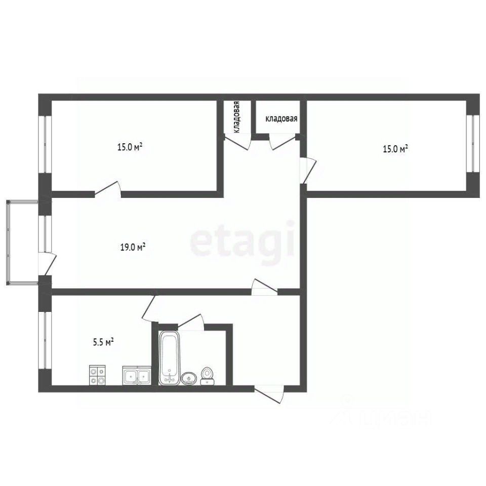 Дополнительными преимуществами являются два отдельных кладовых помещения для хранения и балкон с южной ориентацией, наполняющий гостинную солнечным светом. Санузел совмещенный.