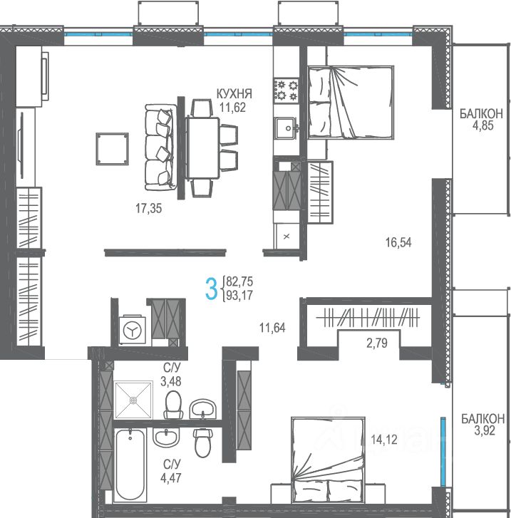 Продаётся 3-комнатная квартира в сданном доме (Бакунинский проезд, 13 (Дом 2)), срок сдачи: II-кв. 2025, общей площадью 93.17 кв.м., на 16 этаже. Жилой комплекс "Бакунинский" в городе Ялта Республики Крым на улице Бакунинский проезд.
