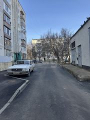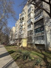 Двухкомнатная квартира на третьем этаже девятиэтажного дома расположена в центре города Саки, на пешеходной улице Курортной.