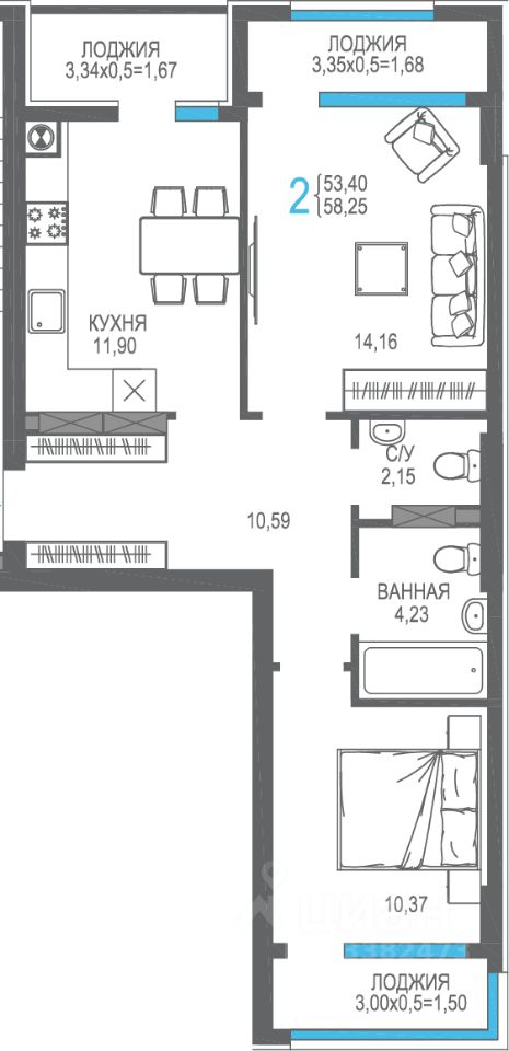 58,25 м²