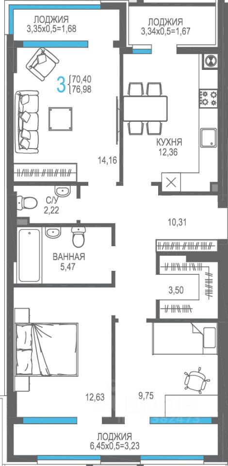 Продаётся 3-комнатная квартира в строящемся доме (Корпус 7), срок сдачи: I-кв. 2026, общей площадью 76.98 кв.м., на 1 этаже. Жилой комплекс "На Фонтанке" в городе Алушта на улице Багликова.