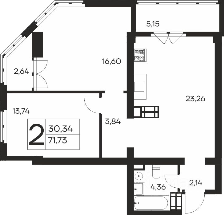 71,73 м²