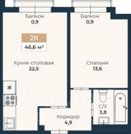 В продаже 2-комнатные апартаменты в комплексе Чайка. Общая площадь — 46,5 кв.м., расположены на 4м этаже. Из окон открывается вид на горы.