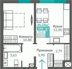 Продаётся 1-комнатная квартира в строящемся доме (С7), срок сдачи: III-кв. 2027, общей площадью 35.22 кв.м., на 1 этаже. Жилой квартал "Абрикос" - начало яркой истории жизни в прогрессивном районе Симферополя - Семья городских кварталов "Крымская Роза".