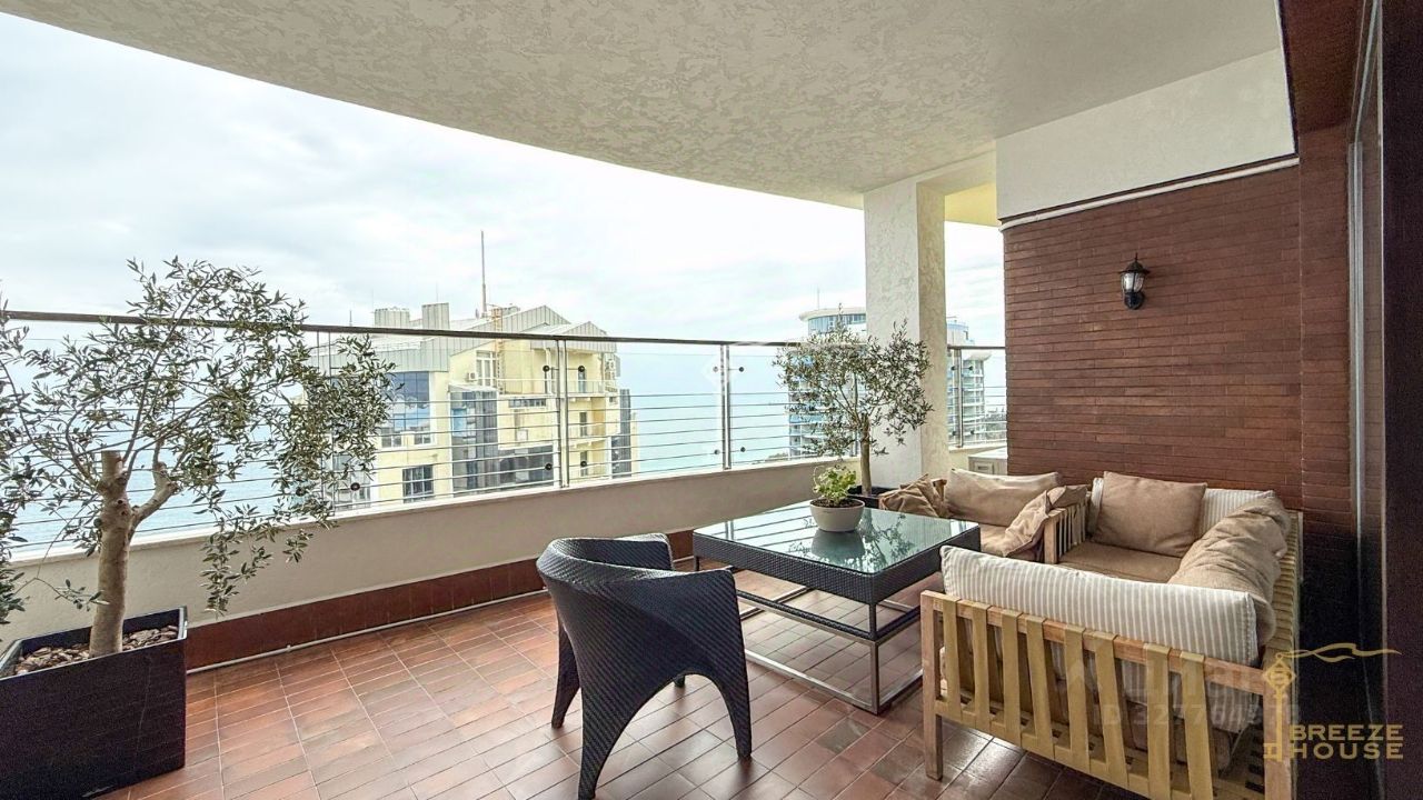 Площадь квартиры — 116,4 м² плюс открытая видовая терраса 25 м², идеально подходящая для отдыха с видом на море.