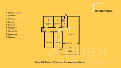 Просторная и светлая 3-комнатная квартира с террасой с панорамным видом на море и город, расположенная на 13 этаже современного 14-этажного жилого комплекса ЖК "Омега" — одного из самых престижных объектов в центре Ялты, в 3 минутах ходьбы от пляжа и набережной.