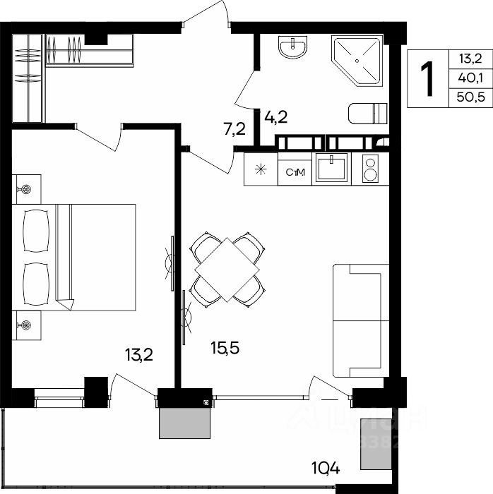 50,5 м²