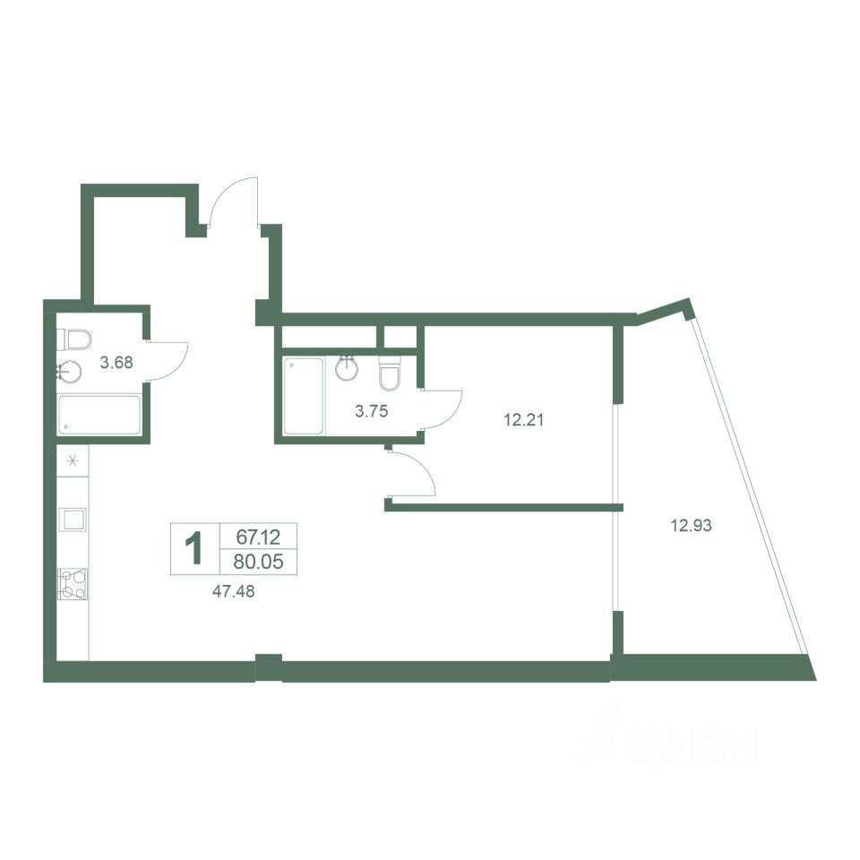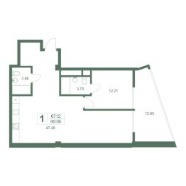 Продаётся студия-апартаменты в строящемся доме (Корпус 3), срок сдачи: I-кв. 2027, общей площадью 80.05 кв.м., на 6 этаже.