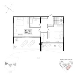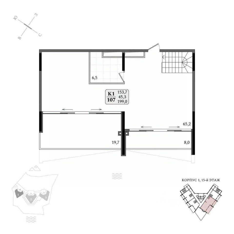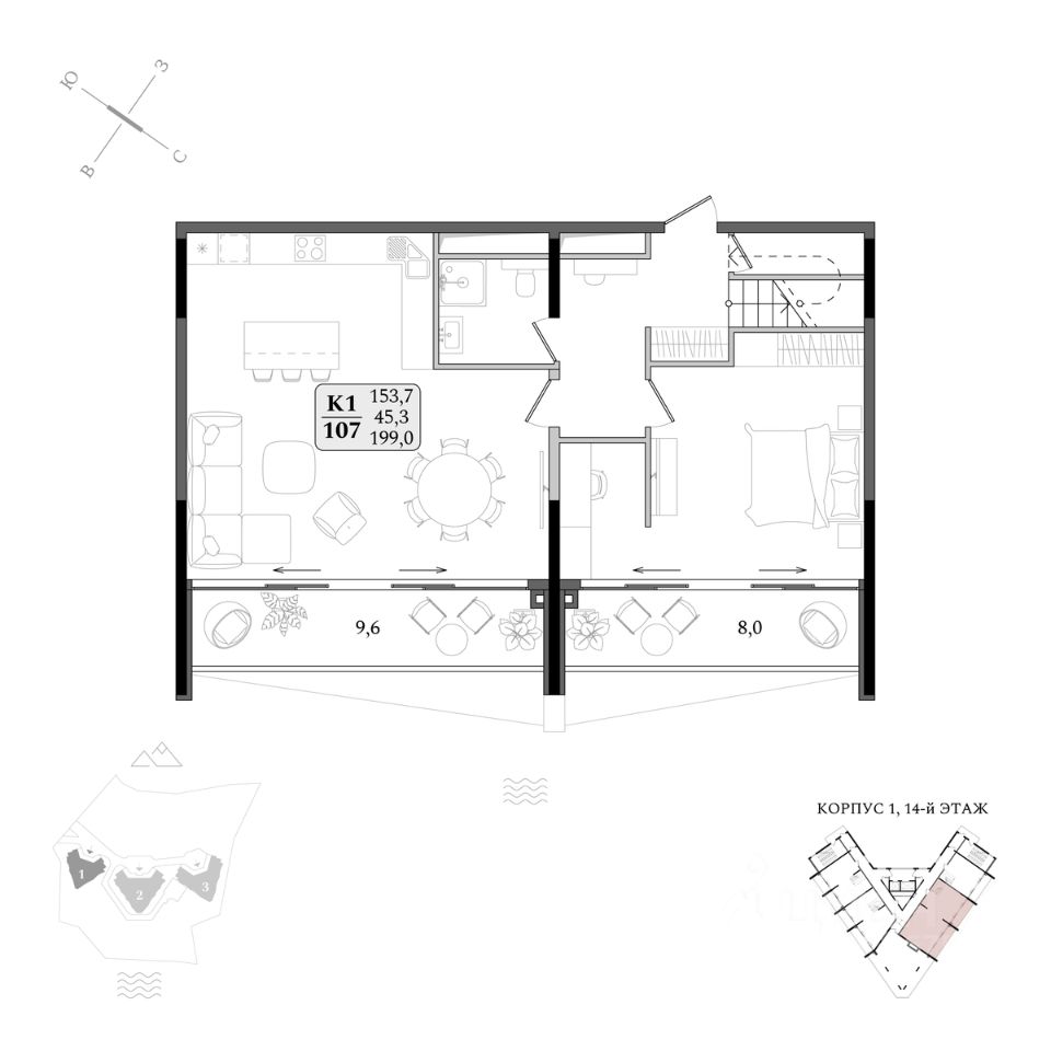 Продаются 1-комнатные апартаменты в строящемся доме (Корпус 1), срок сдачи: IV-кв. 2027, общей площадью 199 кв.м., на 14 этаже.