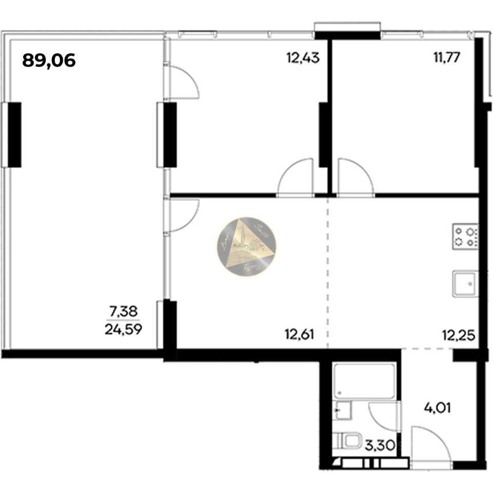 - Общая площадь квартиры 89.06 м2