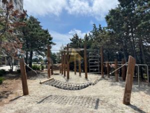 - Закрытая территория комплекса оборудована воркаут-зонами, детскими и смотровыми площадками, тропой здоровья, зонами барбекю, площадкой для гимнастики и йога-центром.