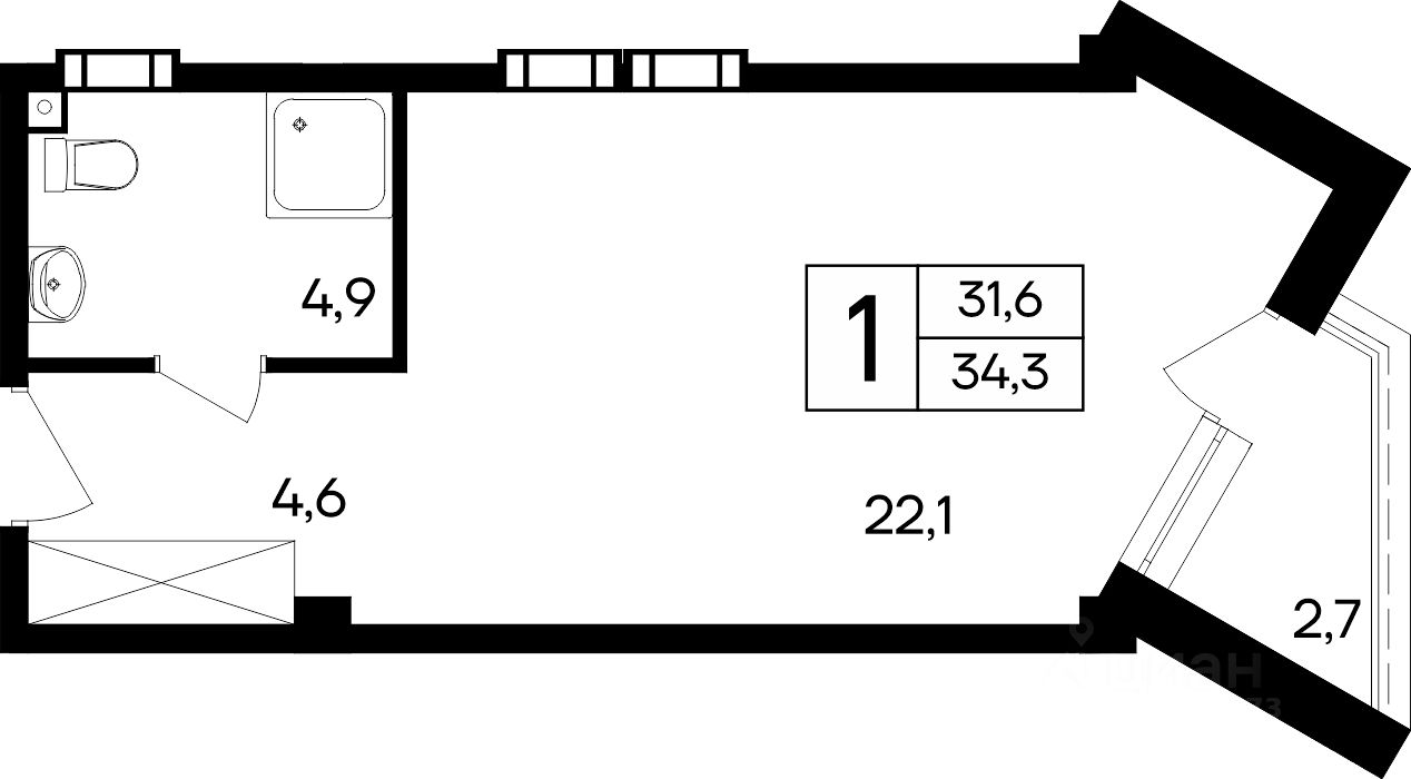 34,3 м²