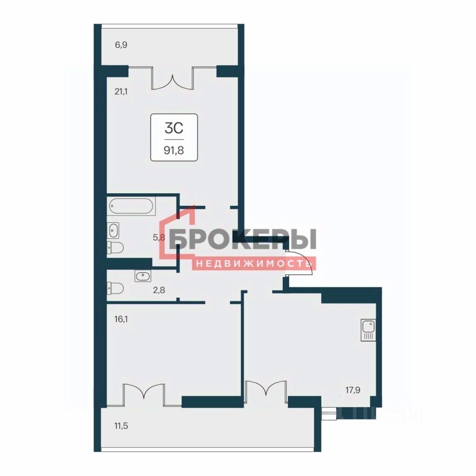 - Площадь 91.8 м2